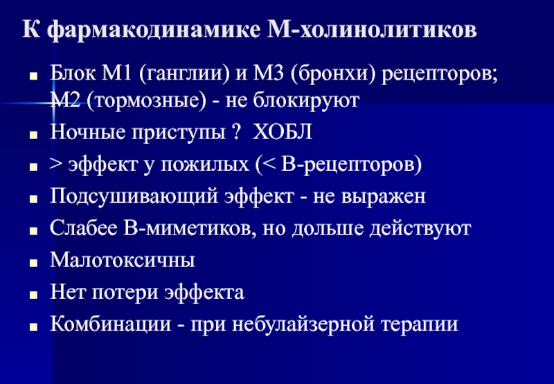 Блок М1 (ганглии) и М3 (бронхи) рецепторов; М2