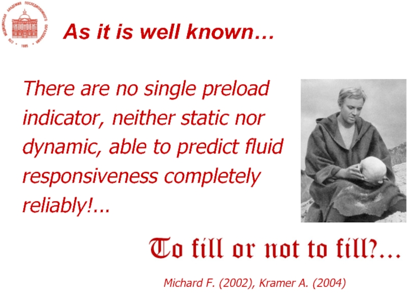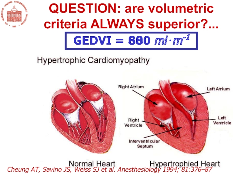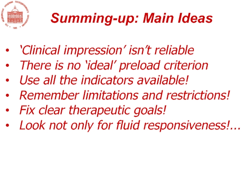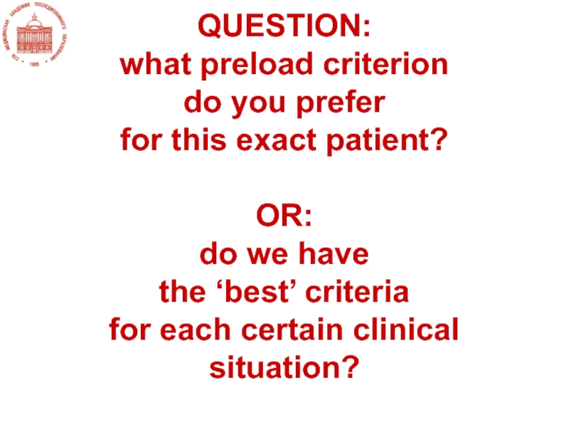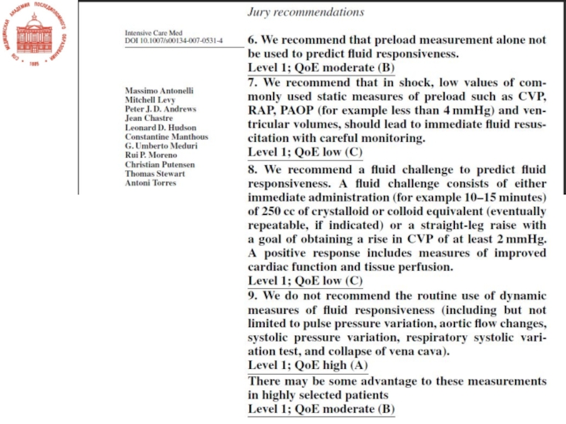 Слайд 13Волемия – это функциональное соответствие соотношения объем/емкость (т.е. преднагрузки) задаче