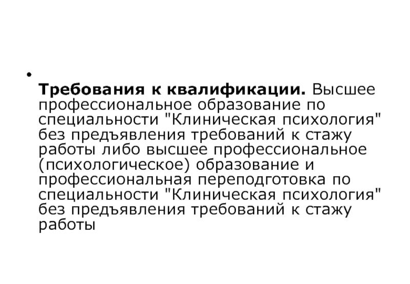 Требования к квалификации. Высшее профессиональное образование по специальности "Клиническая психология" без