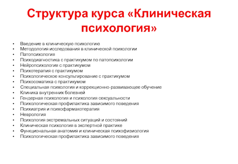 Слайд 7Структура курса «Клиническая психология»