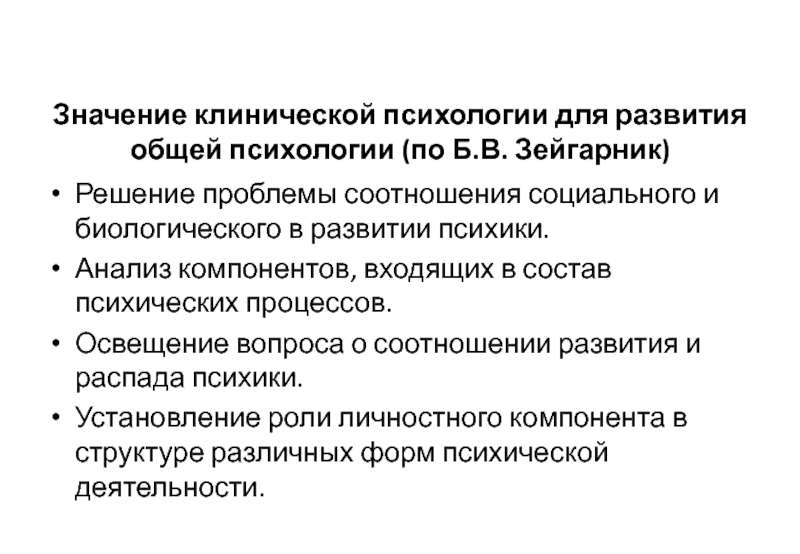 Слайд 50Значение клинической психологии для развития общей психологии (по Б.В. Зейгарник)