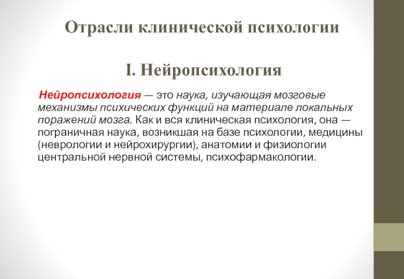 Нейропсихология – это наука, изучающая мозговые механизмы психических функций на