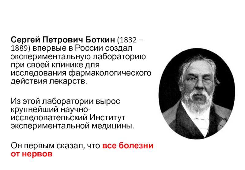 Слайд 43Сергей Петрович Боткин (1832 – 1889) впервые в России создал