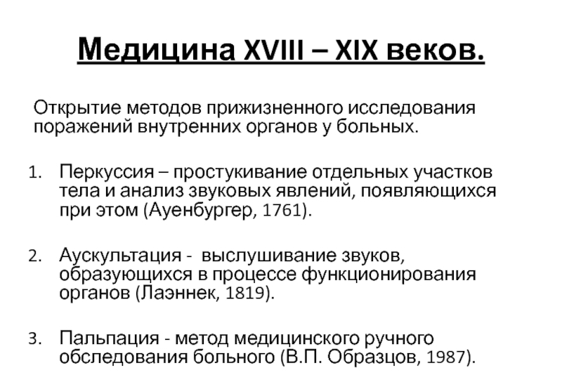 звуковых явлений, появляющихся при этом (Ауенбургер, 1761).