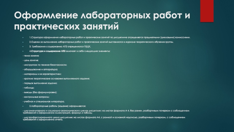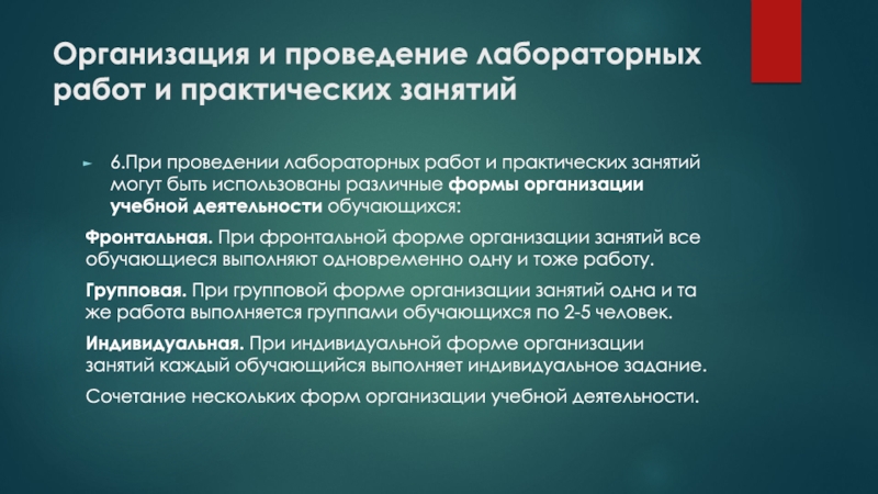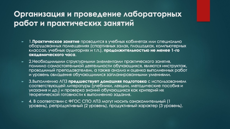 Слайд 6Организация и проведение лабораторных работ и практических занятий
