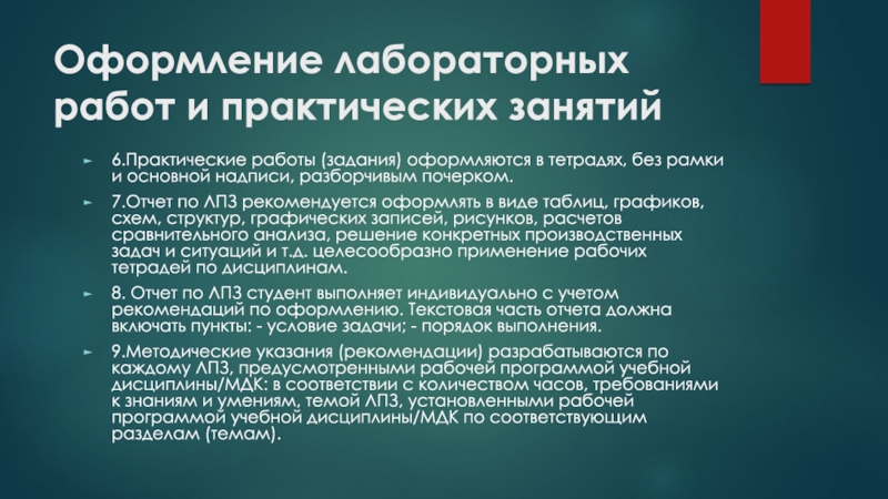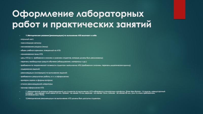 12.Методические рекомендации по выполнению ЛПЗ должны быть доступны студентам.