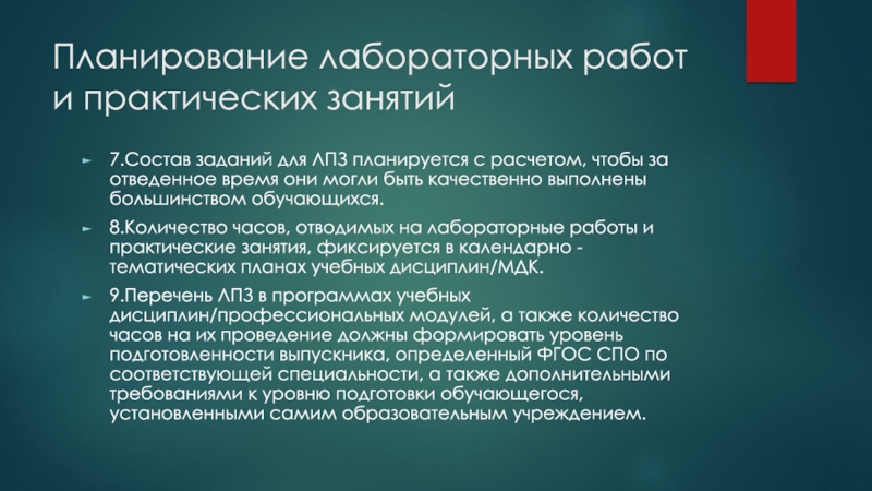 Слайд 7Организация и проведение лабораторных работ и практических занятий