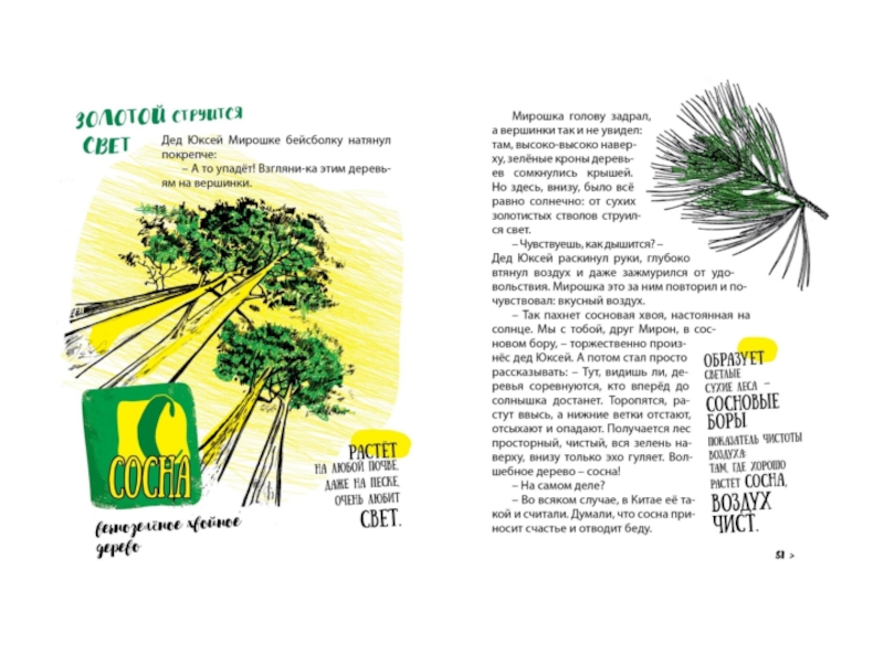 В книге имеют место не только живые описания природы, но и реальные герои: дедушка Юксей и его внук Мирошка. Содержание балансирует на стыке художественной и научно-популярной литературы. По сути – это «художественная Азбука» природы Пермского края.