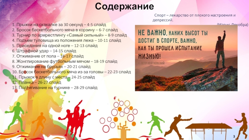 1. Прыжки на скакалке за 30 секунд – 4-5 слайд