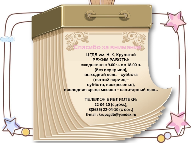 Слайд 15ЦГДБ им. Н. К. Крупской