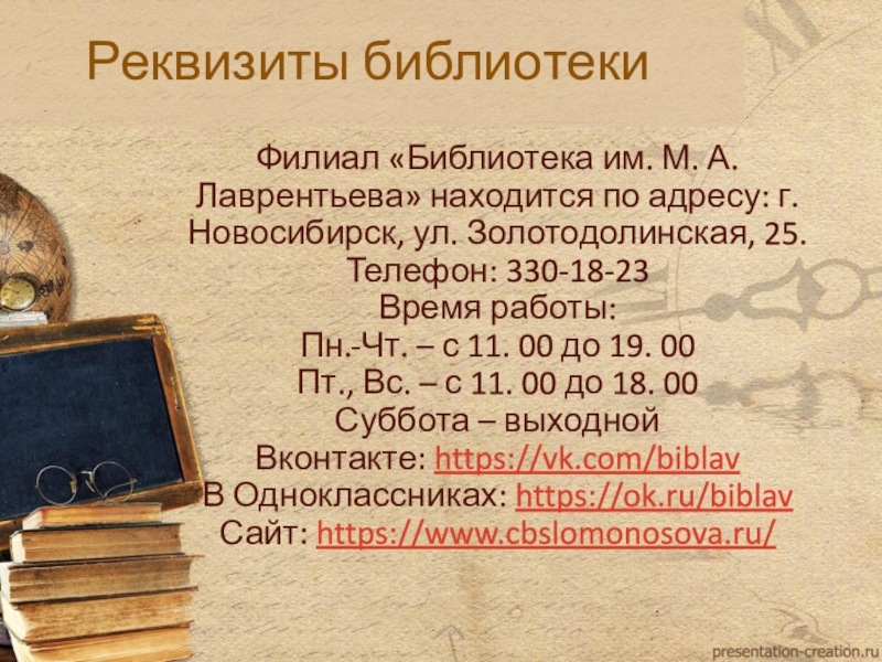 Слайд 12Реквизиты библиотеки