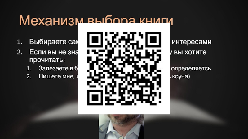 Механизм выбора книгиВыбираете сами в соответствии с вашими интересамиЕсли вы не знаете какую следующую книгу вы хотите