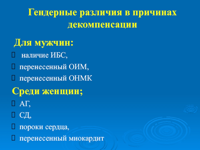 Соотношение числа женщин, имеющих ХСН, к числу мужчин составляет, примерно, 3:1
