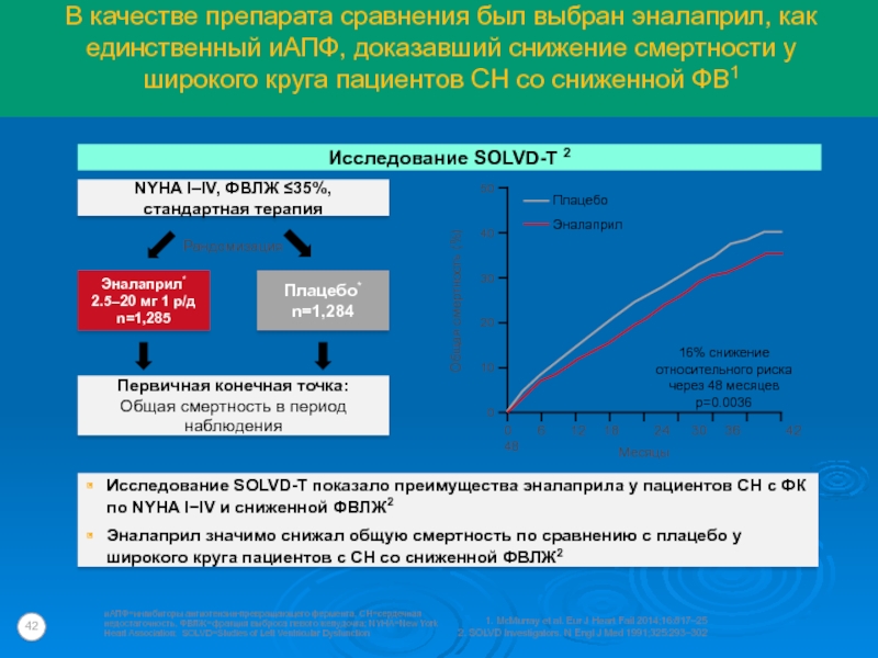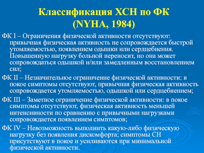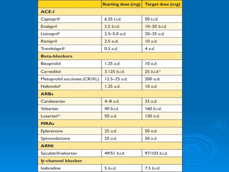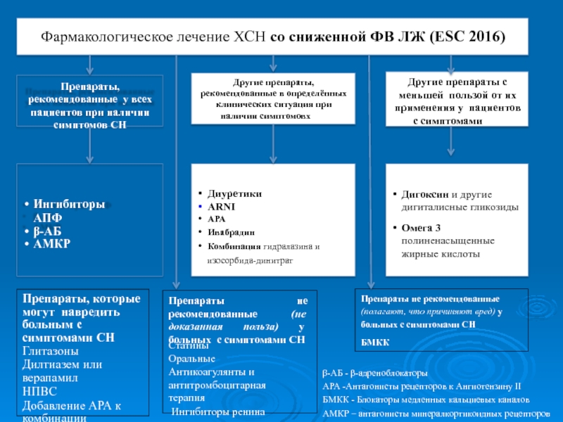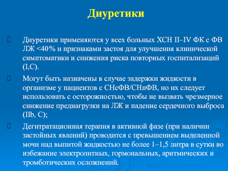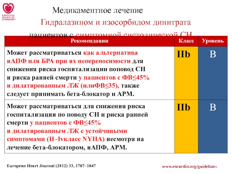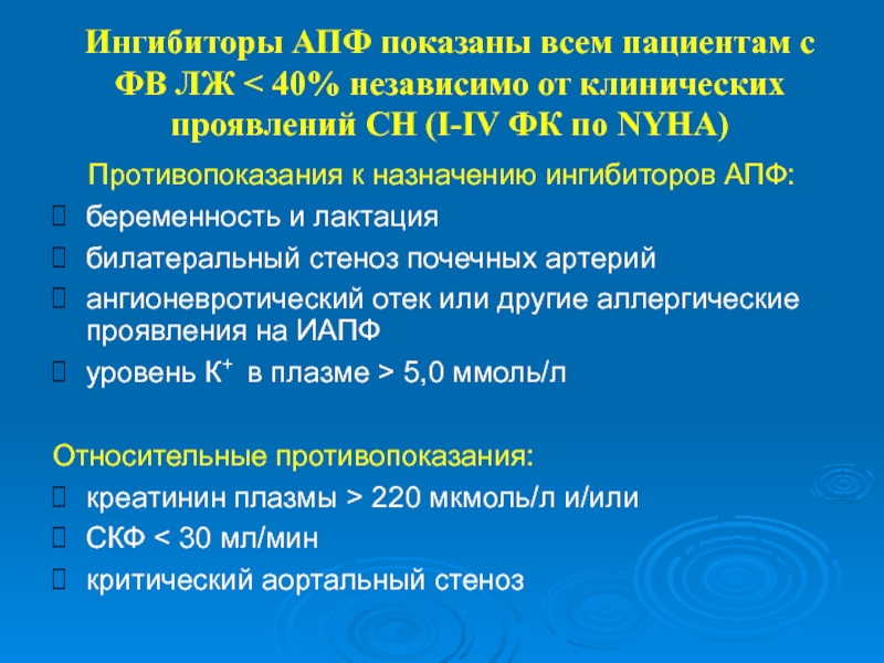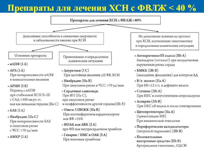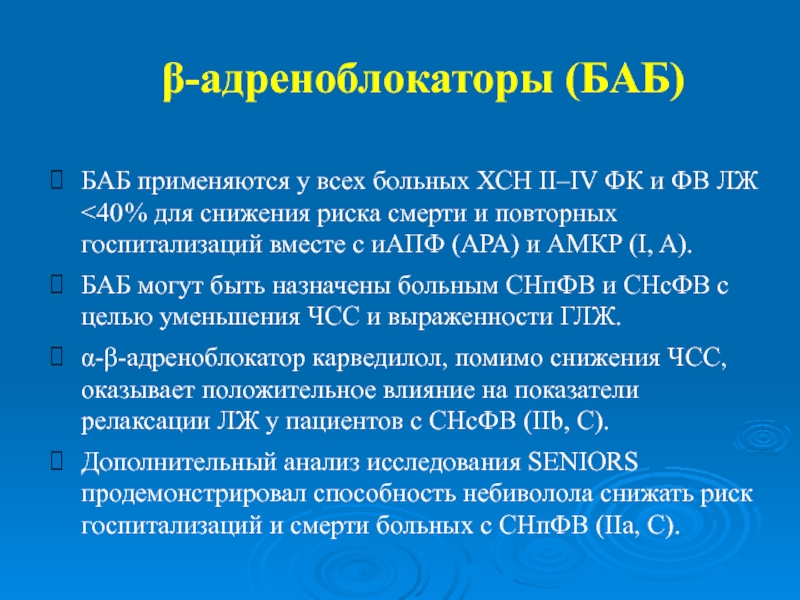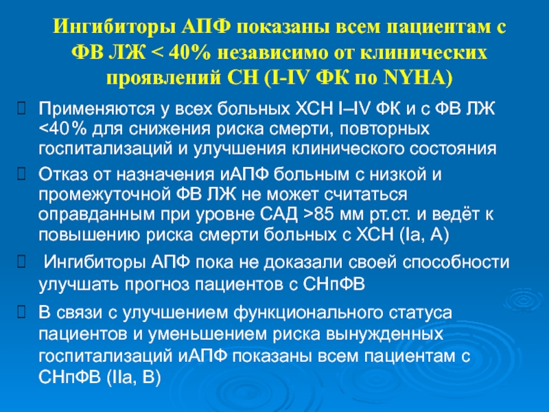 (II–IV ФК по NYHA), систолической дисфункцией ЛЖ при отсутствии острой