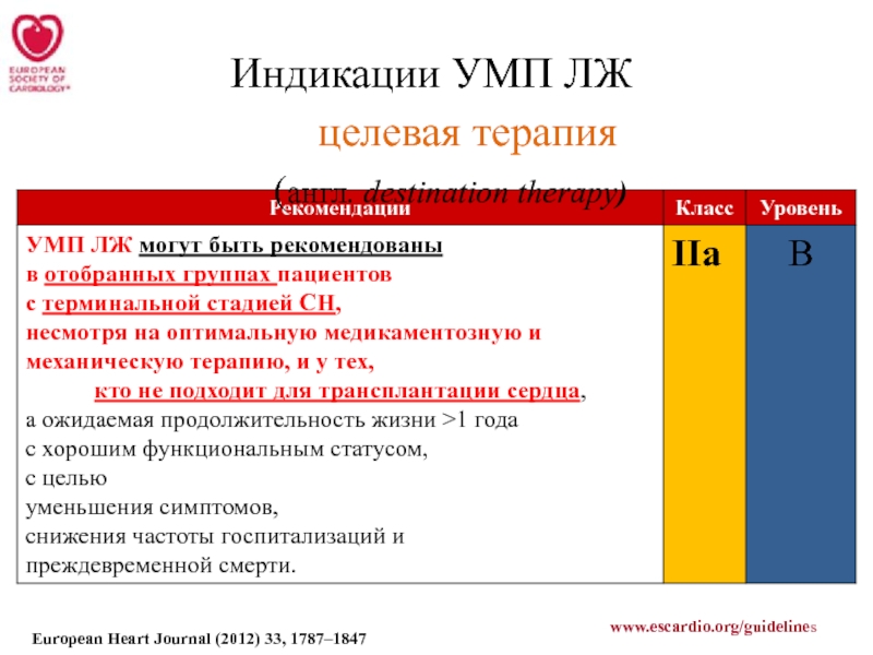 при ФВ ЛЖ≤35% и сохранении симптомов