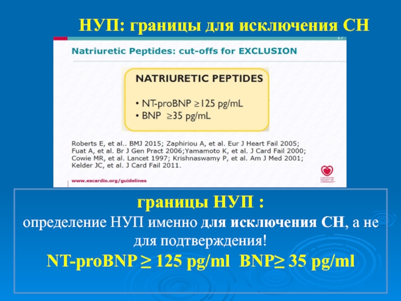 BNP≥35 pg/ml; NT-proBNP ≥125 pg/ml