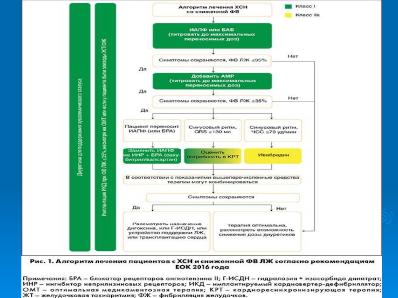 Слайд 75Рекомендации по начальному лечению больных СН и ФП с высокой