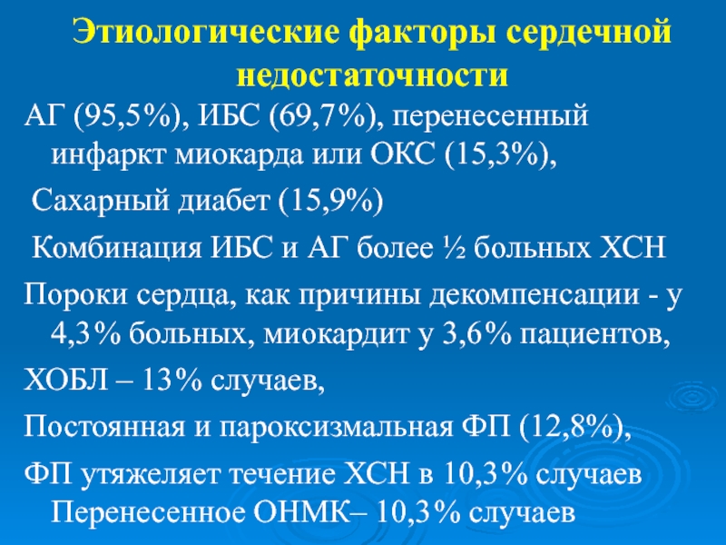 ФП утяжеляет течение ХСН в 10,3 % случаев Перенесенное ОНМК– 10,3 % случаев