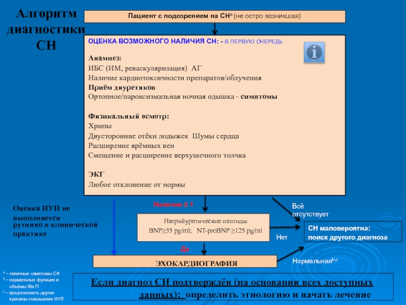 Слайд 10Пациент с подозрением на СНa (не остро возникшая)