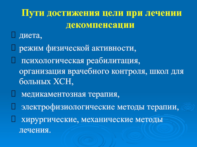 ритмом при недостаточной эффективности основных средств лечения декомпенсации для уменьшения