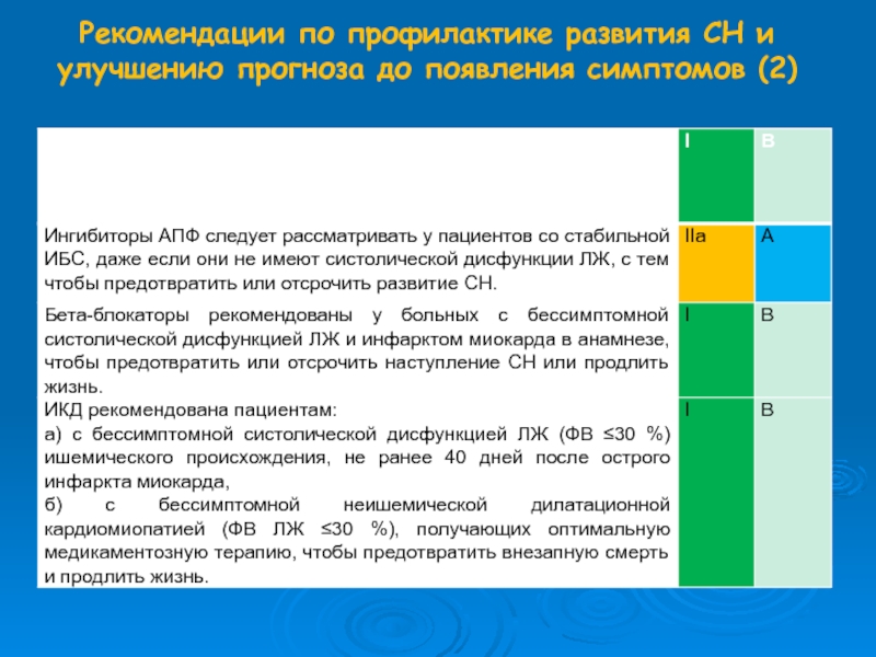 Слайд 84Рекомендации по профилактике развития СН и улучшению прогноза до появления