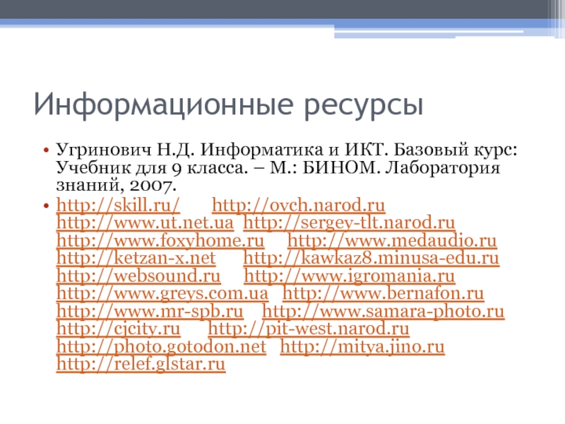 Угринович Н.Д. Информатика и ИКТ. Базовый курс: Учебник для