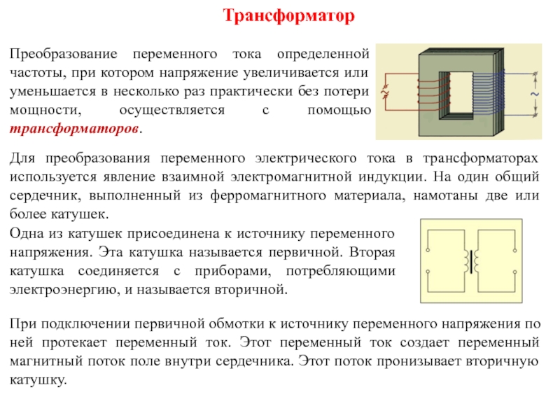 Если ток в контуре 2 переменный, то и магнитный поток, пронизывающий контур 1 изменяется во времени. Это приводит к возникновению ЭДС индукции в контуре 1. ЭДС индукции в контуре 1