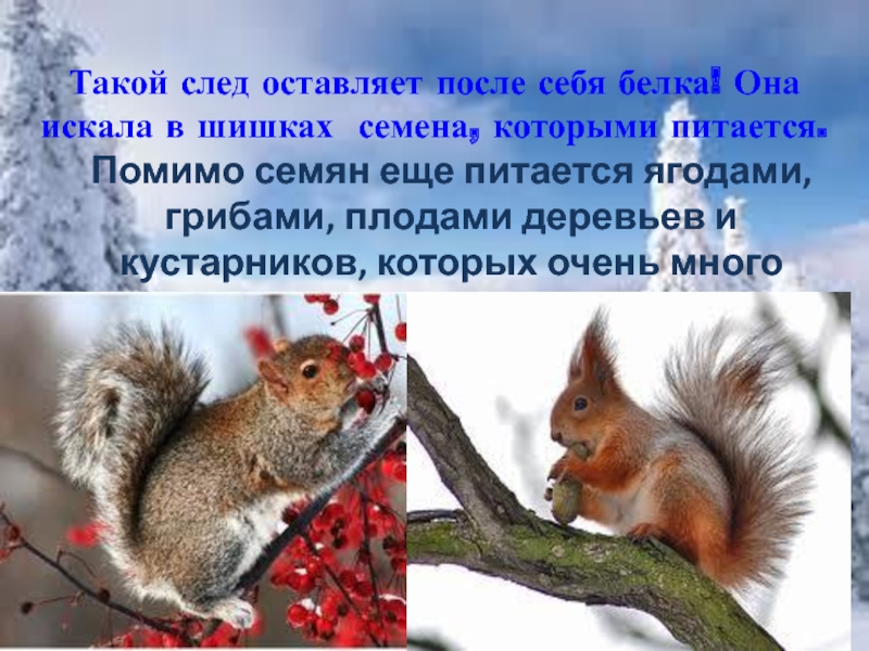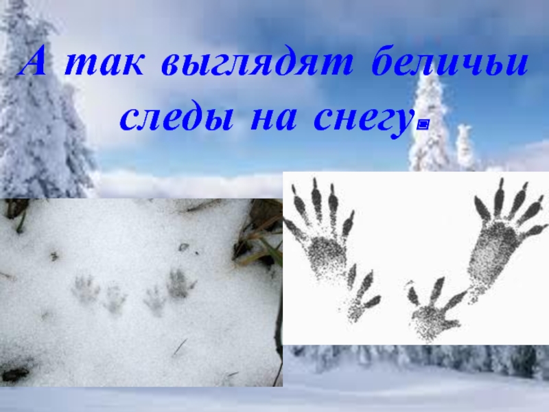 Слайд 37А так выглядят беличьи следы на снегу.