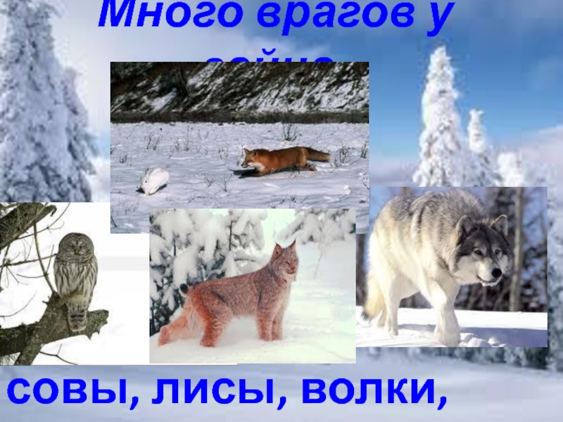 Слайд 12Много врагов у зайца-