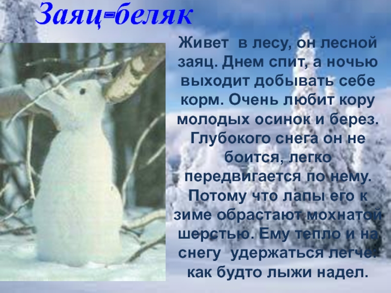 Живет в лесу, он лесной заяц. Днем спит, а ночью