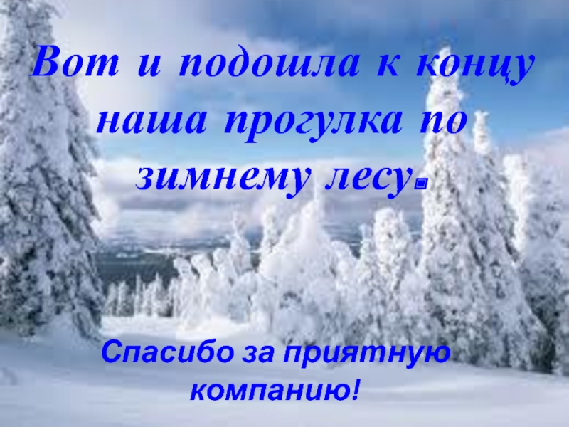 Слайд 40Вот и подошла к концу наша прогулка по зимнему лесу.