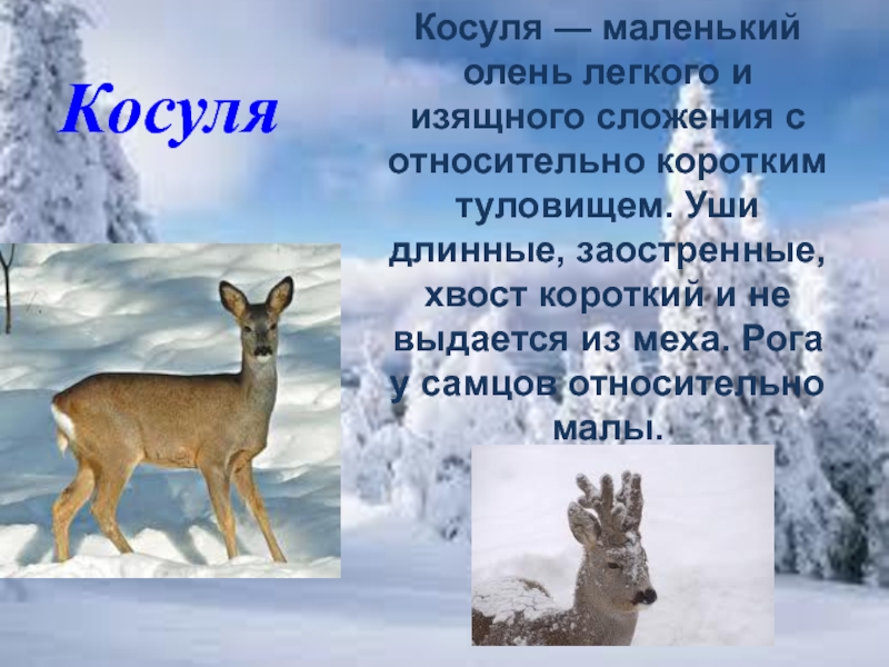 Косуля — маленький олень легкого и изящного сложения с относительно