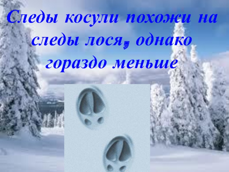 Слайд 32Следы косули похожи на следы лося, однако гораздо меньше