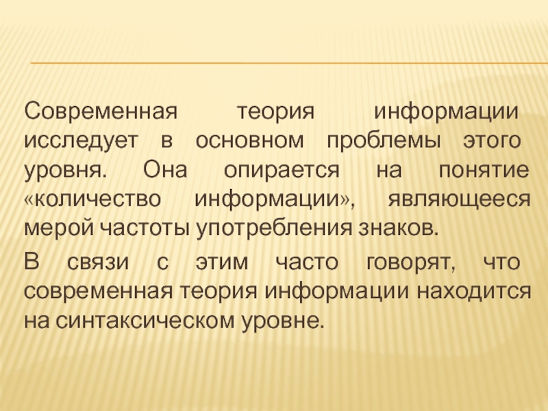 В связи с этим часто говорят, что современная теория информации находится на синтаксическом уровне.