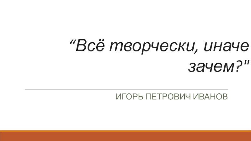 Слайд 4“Всё творчески, иначе зачем?"