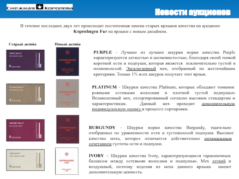 старых ярлыков качества на аукционе Kopenhagen Fur на ярлыки с