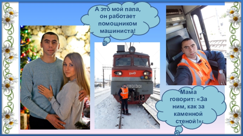 Слайд 8А это мой папа, он работает помощником машиниста!
