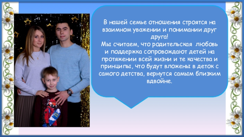 Слайд 14В нашей семье отношения строятся на взаимном уважении и понимании