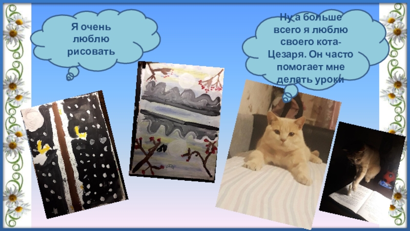 Я очень люблю рисовать Ну а больше всего я люблю своего кота- Цезаря. Он часто помогает мне