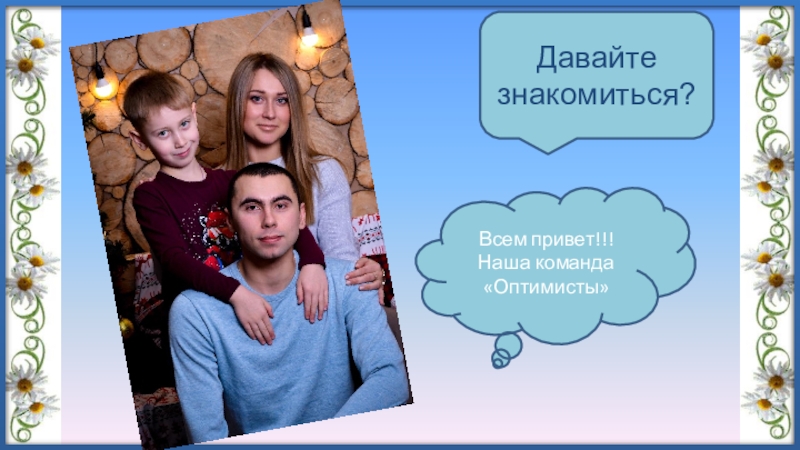 Всем привет!!!Наша команда «Оптимисты»Давайте знакомиться?