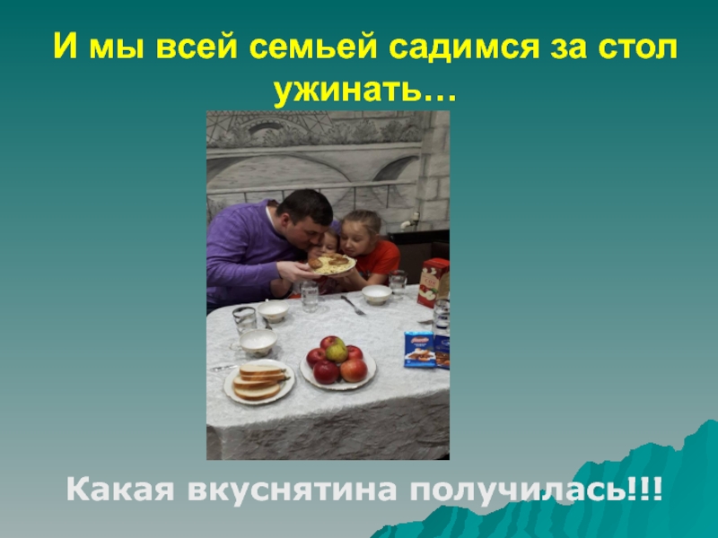 Слайд 7И мы всей семьей садимся за стол ужинать…