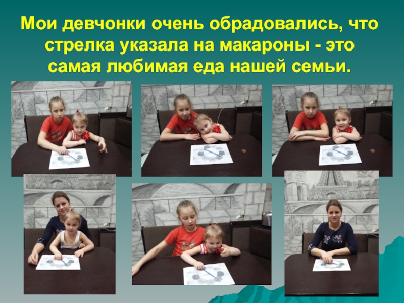 Слайд 2Мои девчонки очень обрадовались, что стрелка указала на макароны -