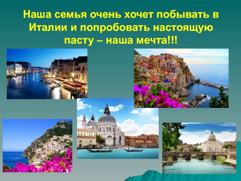 Слайд 10Наша семья очень хочет побывать в Италии и попробовать настоящую