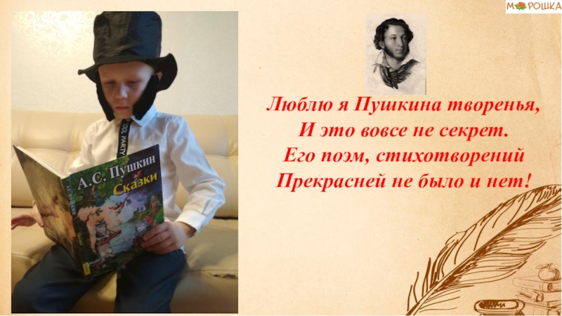 Слайд 2Люблю я Пушкина творенья,     И это вовсе не секрет.   Его