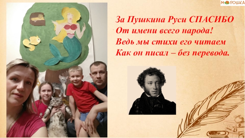 За Пушкина Руси СПАСИБО От имени всего народа! Ведь мы стихи его читаем Как он писал –