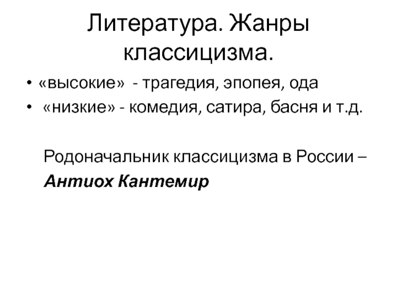 Слайд 14Литература. Жанры классицизма.