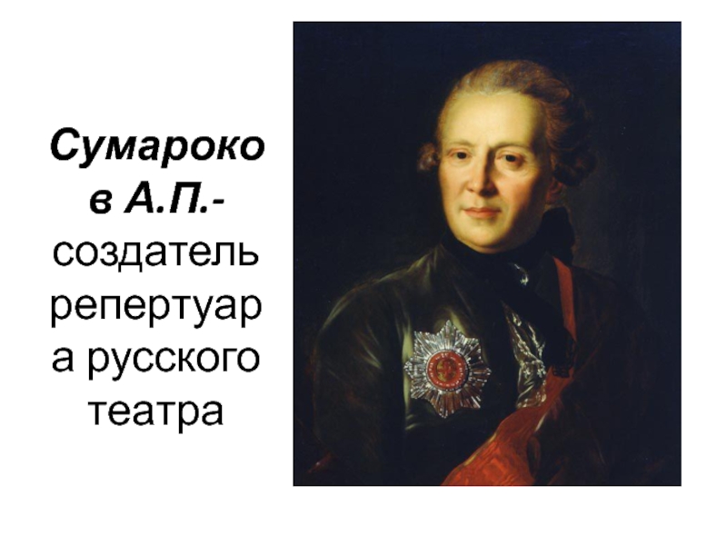 Слайд 15Сумароков А.П.- создатель репертуара русского театра
