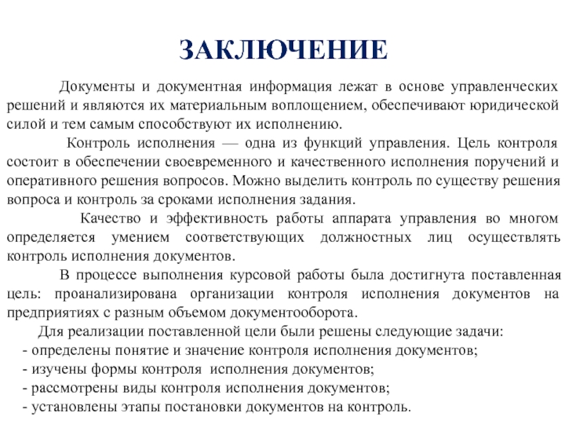 Целью курсовой работы является анализ организации контроля исполнения документов на предприятиях с разным объемом документооборота.
