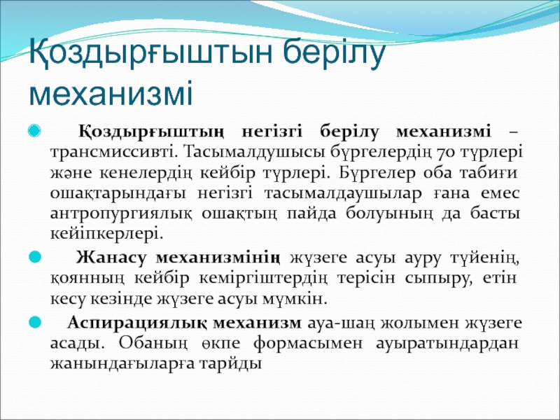 Слайд 9Қоздырғыштын берілу механизмі