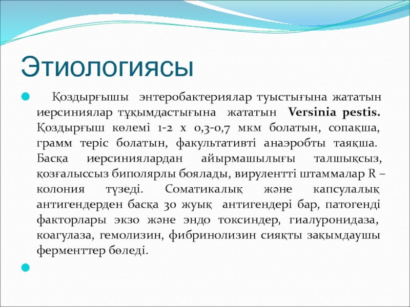 pestis. Қоздырғыш көлемі 1-2 х 0,3-0,7 мкм болатын, сопақша, грамм